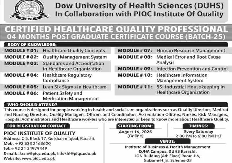 Prospective students are advised to verify all details from the official DUHS Karachi website or admission office before applying. Don’t miss this opportunity to advance your career in healthcare with one of Pakistan’s top medical institutions!