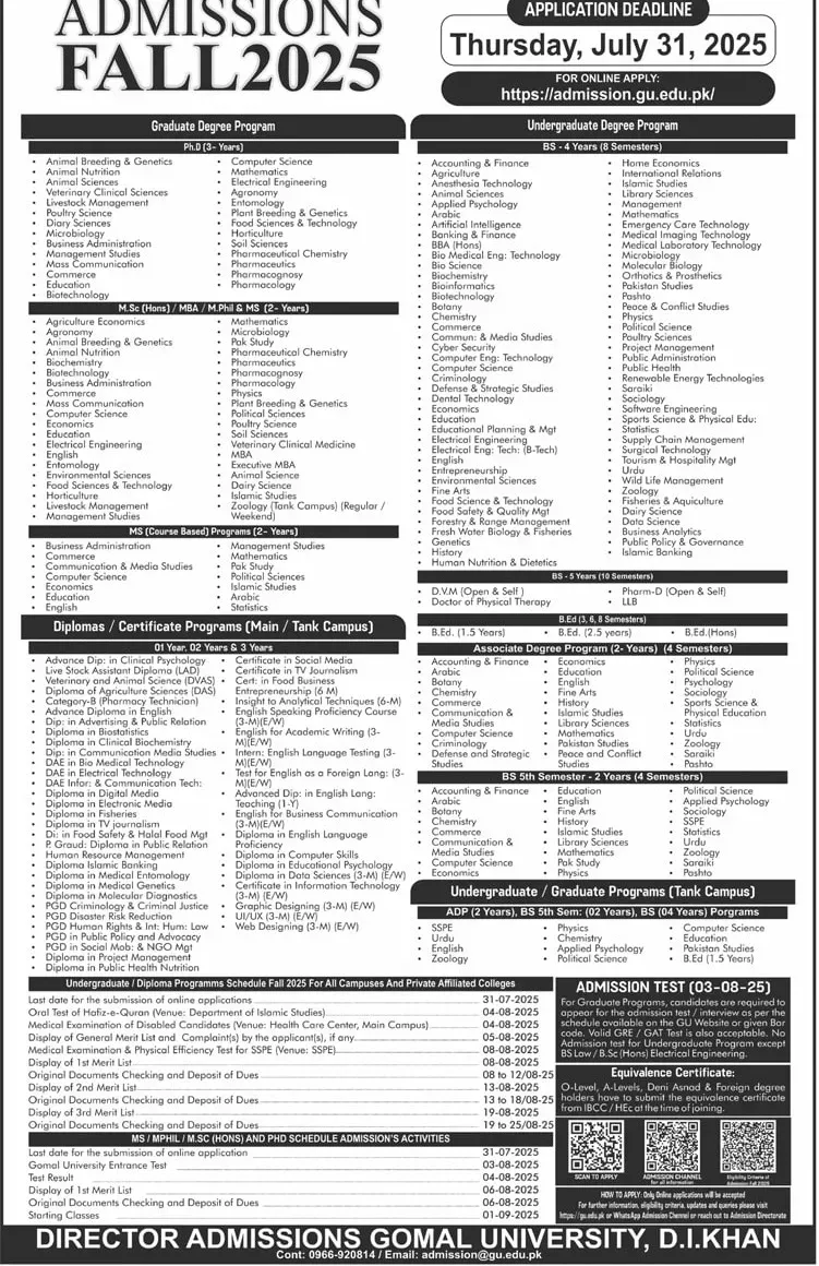 For additional details, visit the official Gomal University website or contact the admissions office directly.