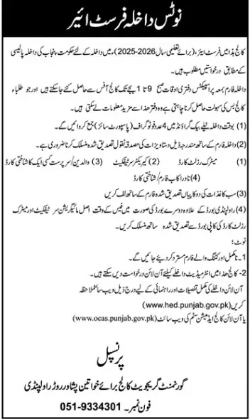 For complete details on GDCW Peshawar Road Admission 2025, check the official advertisement below: