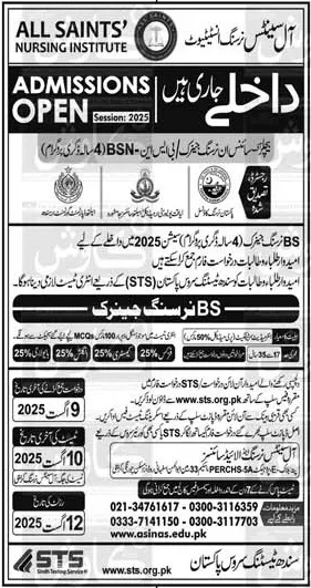 All Saints Institute of Nursing & Allied Sciences (ASIN&AS) Admission 2025 – Apply Now Are you looking for a prestigious institution to pursue a career in nursing and allied health sciences? All Saints Institute of Nursing & Allied Sciences (ASIN&AS) Karachi has opened admissions for 2025 in its undergraduate programs. This is an excellent opportunity