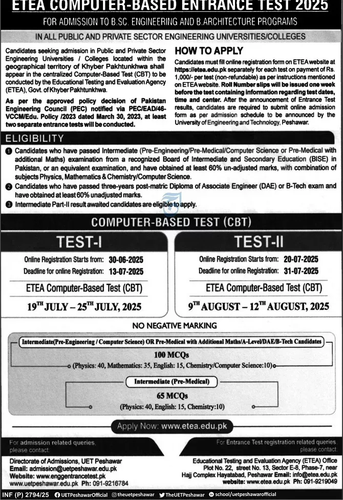 🔹 Don’t miss this chance to join one of Pakistan’s leading engineering institutions! Apply now before the deadline.